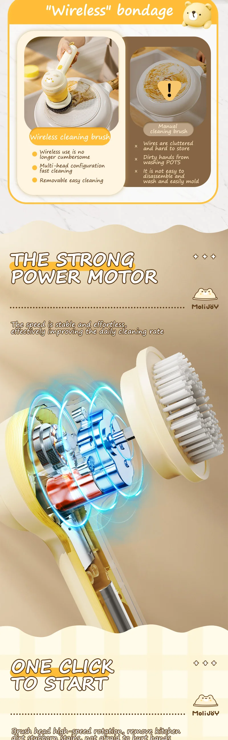5 in 1 Multifunctional Wireless Electric Magic Dish Brush Spin Scrubber Scrub Cleaning Brush